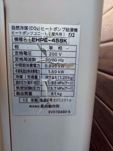 富士市永田町 長府製作所自然冷媒CO2ヒートポンプ給湯機 ヒートポンプユニットEHPE-459K→コロナ自然冷媒CO2家庭用ヒートポンプ給湯機 ヒートポンプユニットCHP-DZ451K エコキュート交換工事