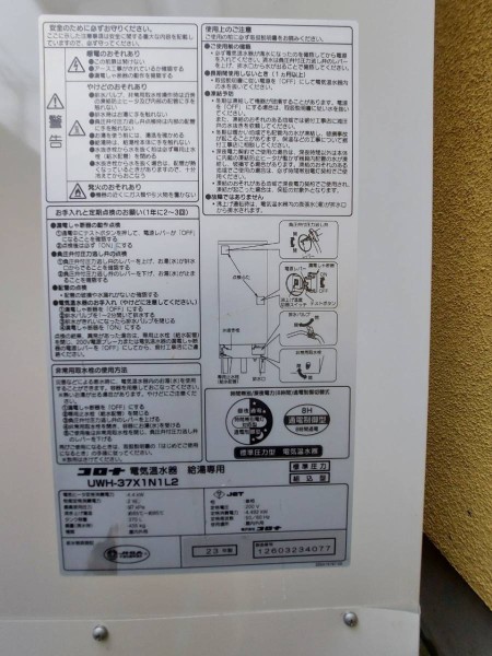 沼津市 コロナ電気温水器 給湯専用 CTU-37X1N1L2 給湯器交換工事